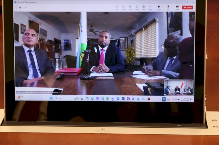 وذلك عبر تقنية الفيديو كونفرانس بحضور المهندسة صباح مشالى نائب الوزير والسفير احمد على برى سفير جمهورية جيبوتي بالقاهرة ومندوبها الدائم لدى جامعة الدول العربية والسفير خالد الشاذلى سفير جمهورية مصر العربية لدى جمهورية جيبوتي والسفير اسامه الهادى ممثل الوكالة المصرية للشراكة من اجل التنمية والسفير محمد صفوت نائب مساعد وزير الخارجية للشؤون الأفريقية