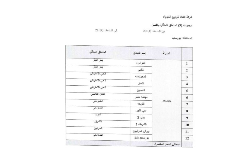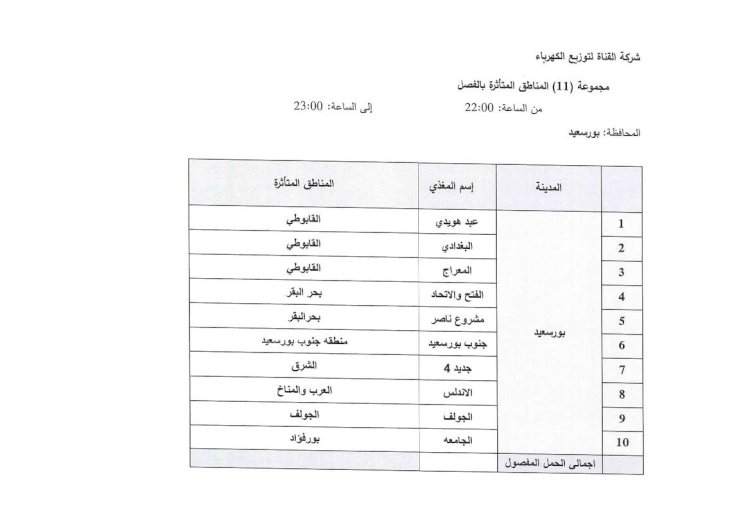 اعرف مواعيد قطع الكهرباء عن بيتك لو كنت من سكان محافظة بورسعيد