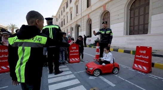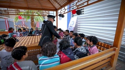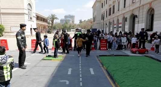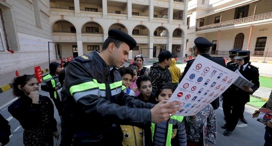 وكذا إقامة مدينة مرورية للأطفال بإحدى المدارس بالجيزة تم خلالها تعريف الأطفال بالقواعد المرورية وإشارات المرور وإهدائهم هدايا رمزية. وفى سياقٍ آخر واصلت مدريات الأمن تنظيم زيارات للأطفال الأيتام إلى أقسام (المرور - الحماية المدنية) بمختلف مديريات الأمن لتعريف الأطفال الأيتام بالقواعد المرورية وإشارات المرور،