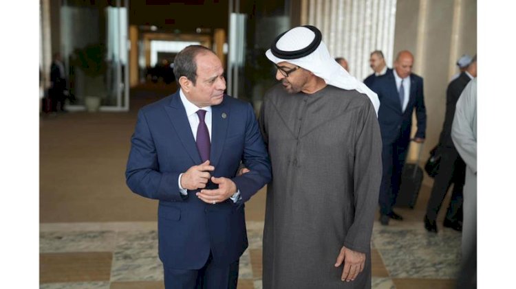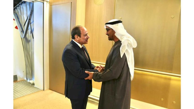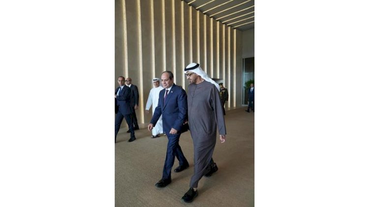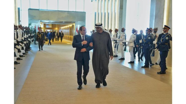 استقبل صاحب السمو الشيخ محمد بن زايد رئيس دولة الإمارات العربية المتحدة، اليوم السيد الرئيس عبد الفتاح السيسي في مطار أبوظبي الدولي. وبعد مراسم الاستقبال عقد الرئيسان اجتماعًا تناول العلاقات الثنائية بين البلدين الشقيقين وسبل تعزيزها بما يحقق مصالح الدولتين وتطلعات شعبيهما الشقيقين، وبشكل خاص في المجالات الاقتصادية والتجارية والاستثمارية.