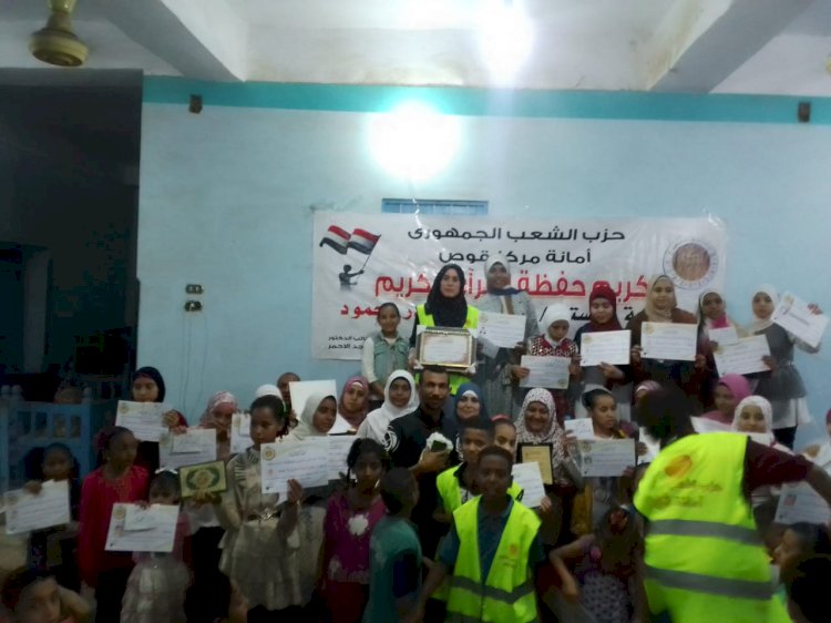 كرمت أمانة حزب الشعب الجمهوري بمركز قوص، بمحافظة قنا، الدفعة الثالثة من حفظة القرآن الكريم وعددهم ٢٠٠ حافظ وحافظة، وذلك بعد تكريمها عدد ١٠٠ حافظ وحافظة في الدفعة الأولى، و عدد ٥٠ في الدفعة الثانية، برعاية النائب الدكتور أحمد عبدالماجد الأحمر، عضو مجلس الشيوخ وأمين عام الحزب بمحافظة قنا، والدكتور محمود عمر عبدالعزيز سليمان، أمين مساعد المحافظة لشئون التنظيم، وعلي عبدالقادر محمود، أمين الحزب بمركز قوص، وحسن عبدين، أمين التنظيم بقوص.