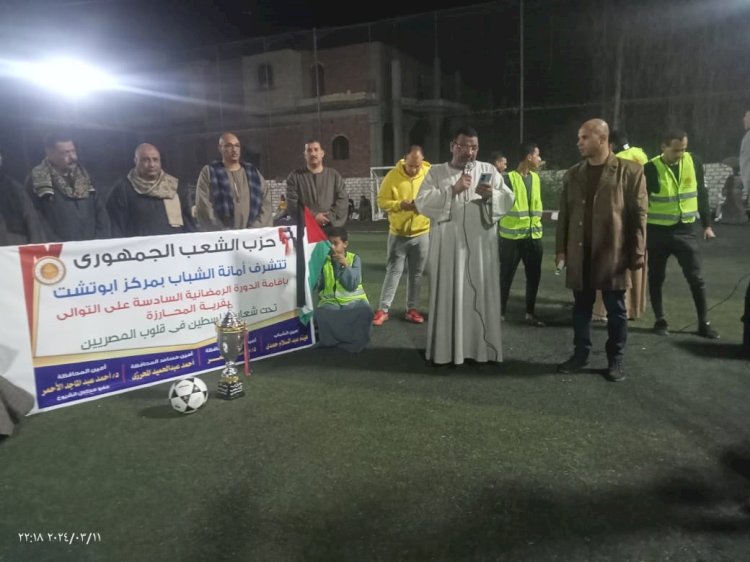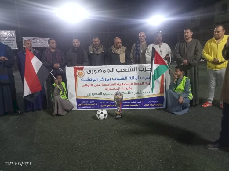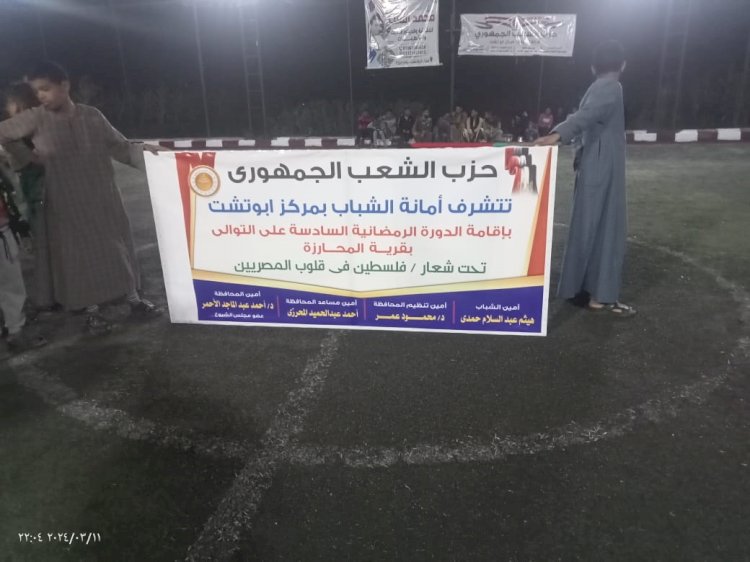 أطلقت أمانة الشباب بحزب الشعب الجمهوري بمركز أبوتشت في محافظة قنا الدورة الرمضانية لكرة القدم بقرية المحارزة في مركز أبوتشت، وذلك تحت رعاية النائب الدكتور أحمد عبدالماجد الأحمر، عضو مجلس الشيوخ، وأمين عام الحزب بمحافظة قنا، والدكتور محمود عمر عبدالعزيز سليمان، أمين مساعد المحافظة لشئون التنظيم، وأحمد عبدالحميد المحرزي، أمين مساعد الحزب بالمحافظة، وهيثم عبدالسلام حمدي، أمين الشباب بمركز أبوتشت.