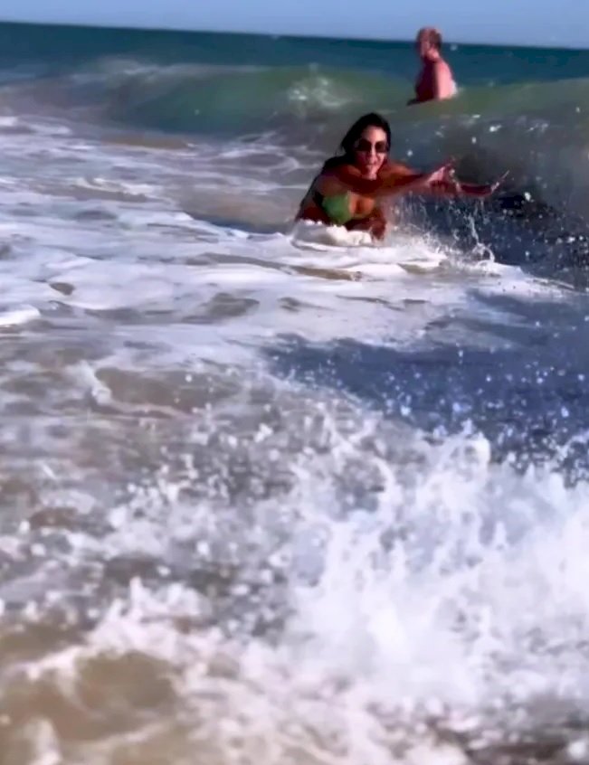 في وقت سابق نشرت مقطع فيديو آسرًا لنفسها وهي تستمتع بحمام منعش في البحر متوقعة وقتًا مثاليًا في المياه المتلألئة.