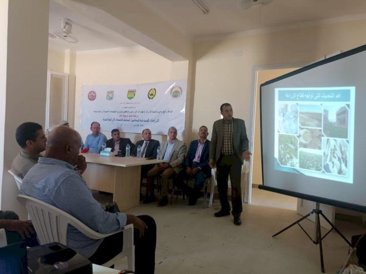 نظم مركز بحوث الصحراء ورشة عمل مجتمعية بتجمع بغداد بمدينة الحسنة محافظة شمال سيناء لتدريب المنتفعين والمزارعين من أبناء سيناء والوادي علي كيفية الإدارة المثلي لأراضي التجمعات الزراعية بسيناء