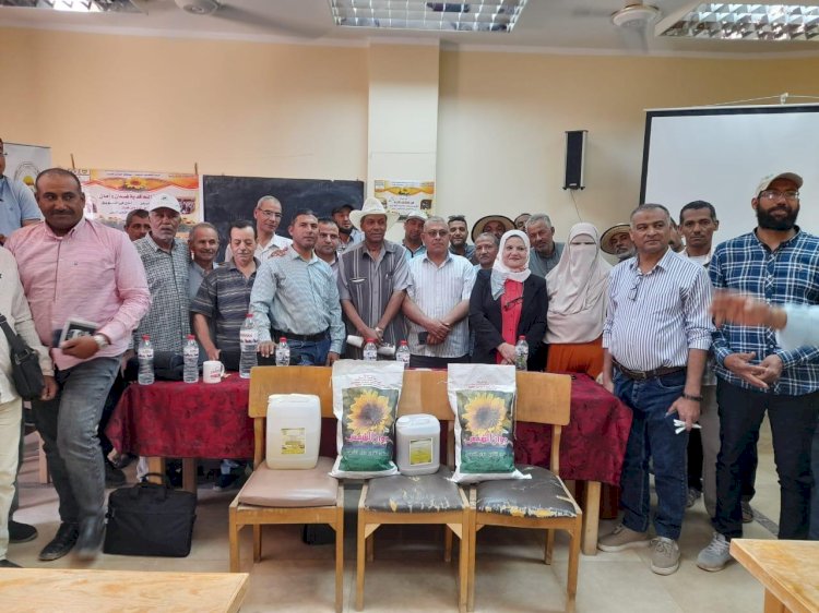 فى إطار البرنامج البحثى تحسين سلاسل قيمة محصول عباد الشمس بمحافظة الوادى الجديد بالتعاون مع البرنامج البحثى إنتاج بذور متحملة للملوحة بإستخدام تركيبات من البكتريا وجزيئات النانو وبحضور الدكتور / مجد المرسي_ مدير عام مديرية الزراعة بالوادي الجديد . وقد بدأت الحملة بالتوعية بأهمية زراعة محصول عباد الشمس الزيتى لسد الفجوة الغذائية من الزيوت النباتية وتقليل قيمة الورادات، ثم أهمية التوجه نحو التعاقد المسبق على زراعة المحصول ، ثم أهمية تطبيق التوصيات الفنية فى الزراعة ومنها استخدام تكنولوجيا النانو كمخصبات حيوية. وذكر الدكتور/وجيه الصاوى- منسق عام الحملة أن المراحل الأولية لإعداد الحملة الإرشادية ،
