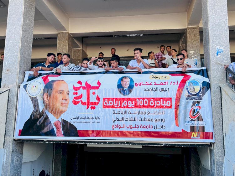 أعلن الدكتور/ أحمد عكاوي رئيس جامعة جنوب الوادي بدء فعاليات مبادرة 100 يوم رياضة والتي تنظم ضمن المبادرة الرئاسية " بداية جديده لبناء الانسان " تحت رعاية الدكتور محمد ايمن عاشور وزير التعليم العالي والبحث العلمي
