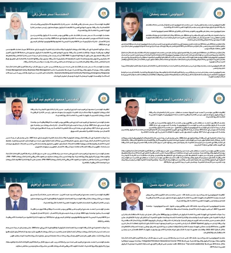 فى إطار استراتيجية وزاره البترول و الثروه المعدنية لتعظيم الاستفادة من العنصر البشرى كونه الثروة الحقيقة للقطاع وباعتباره عنصرا مهما ومحركا أساسيا لمختلف مشروعات قطاع البترول بما يسهم فى تحقيق التنمية الشاملة واستكمالا لمبادره الملازمه work shadowing التى اطلقتها وزارة البترول والثروة المعدنية ضمن المرحلة المتقدمة لبرنامج القيادات الشابة والمتوسطة بما يضمن نقل الخبارات واستدامة الأداء بهدف إعداد قاعدة واسعة من القيادات الشابة المعده وفق اسس علمي وعملية متقدمة اصدر المهندس كريم بدوى وزير البترول والثروة المعدنية قرارا بتكليف 6 من خريجي برنامج القيادات الشابة والمتوسطة للقيام بمهام معاونى رئيس وقيادات الهيئة المصرية العامه للثروة المعدنية