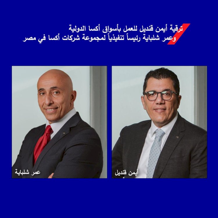 ترقية أيمن قنديل للعمل بأسواق أكسا الدولية وعمر شلباية رئيساً تنفيذياً لمجموعة شركات أكسا في مصر