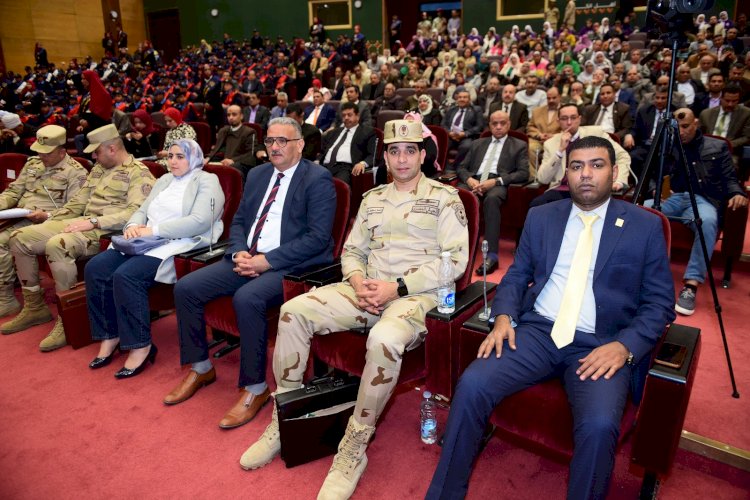 وفى بداية كلمته، نقل اللواء وليد حامد، تحيات الفريق أول محمد زكى القائد العام للقوات المسلحة وزير الدفاع والإنتاج الحربى، والفريق أسامة عسكر رئيس أركان حرب القوات المسلحة، معرباً عن سعادته بالتواجد فى هذا الصرح الجامعي العريق، موجهاً الشكر لرئيس الجامعة على استضافته لفعاليات الندوة، ولكل من ساهم فى تنظيم الندوة وخروجها بهذا الشكل المميز، الذى يؤكد على أننا أمة مبدعة تمتلك مواهب ومبدعين يمثلون كينونة العبقرية المصرية، موضحاً أن الندوة نفذت بالتعاون مع مديرية التربية والتعليم، بهدف المساهمه فى إعداد جيل مثقف قادر على المشاركة فى خطط التنمية المستدامة، وعلى دراية بكافة المخاطر والتحديات التى تواجه الأمن القومي المصري.