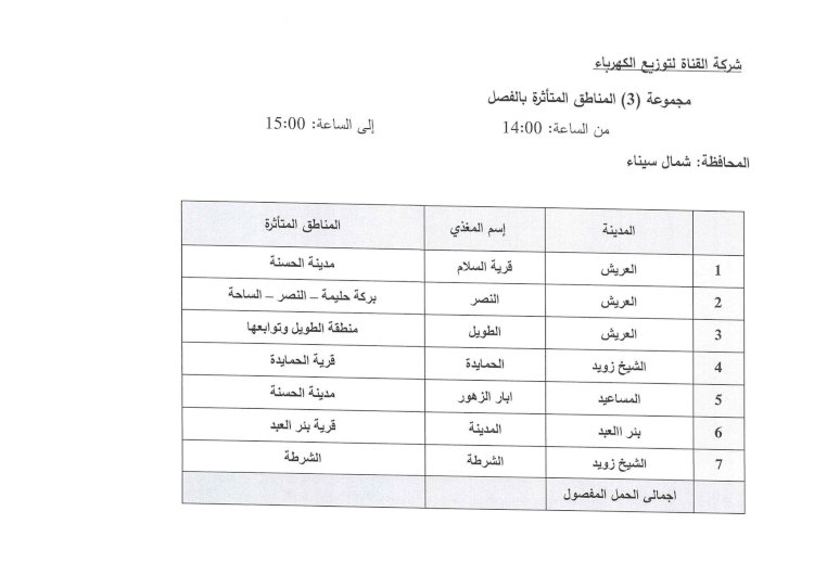 أعلن مجلس الوزراء، عن خطة تخفيف أحمال الكهرباء، التى سيتم تنفيذها بدءا من الساعة الثانية عشرة ظهر الغد الثلاثاء، فى المحافظات المختلفة، بعد التنسيق بين وزارتى الكهرباء والبترول.