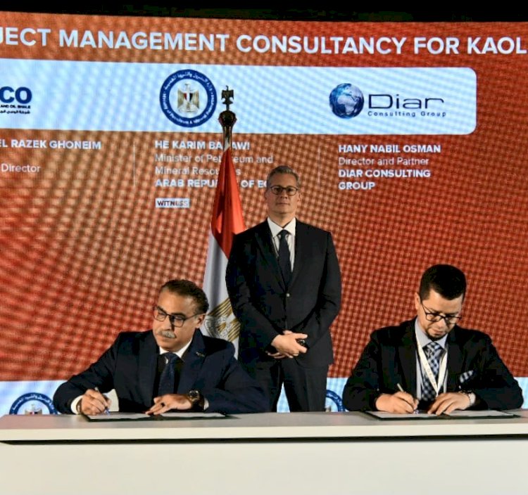 بروتوكول التعاون بين شركة الوادي الجديد للثروة المعدنية والطفلة الزيتية و شركة ديار الهندسية ، بهدف تقديم استشارات ادارة المشروعات فيما يتعلق بفصل وإنتاج خام الكاولين من الرمال الكاولينية . وقع البروتوكول المهندس أمجد غنيم رئيس شركة الوادي الجديد للثروة المعدنية والطفلة الزيتية و الدكتور هاني نبيل المدير والشريك لمجموعة الديار الاستشارية الهندسية .