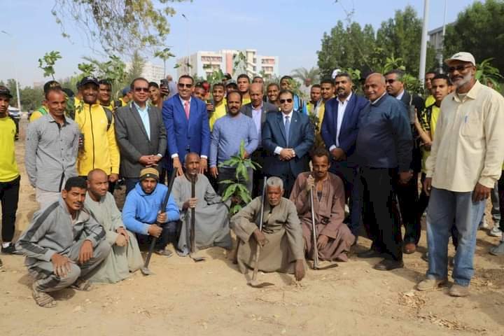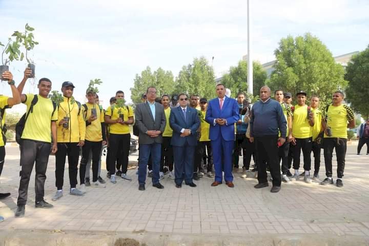 انطلاق مبادرة ١٠٠ مليون شجره مثمره بتوجيهات فخامة الرئيس عبدالفتاح السيسي واستراتيجية مصر ٢٠٥٠ للمناخ تحت رعاية وزارة البيئه جهاز شئون البيئة و وزارة الزراعة افتتح الدكتور احمد عكاوي فعاليات معسكر التشجير الذي تنظمه الجامعة بالتعاون مع مؤسسة هنجملها بحضور الدكتور محمد سعيد نائب رئيس الجامعة لشئون خدمة المجتمع وتنمية البيئة و المهندس محمد قبطان رئيس مجلس امناء مؤسسة هنجملها وفريق عمل المشروع وجهاز شئون البيئة وطلاب الجامعة .