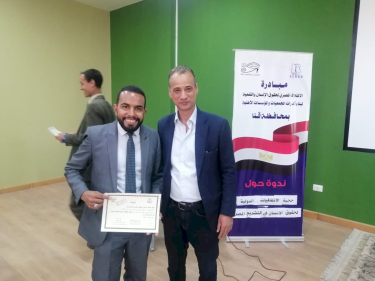 ضمن سلسلة الدورات التدريبية المتخصصة للمحامين بمحافظة قنا، نظم الائتلاف المصرى لحقوق الإنسان والتنمية، ثاني اللقاءات التدريبية المجانية بمحافظة قنا، حول "حجية الاتفاقيات الدولية لحقوق الإنسان في التشريع المصري" وذلك بهدف نقل الخبرات ونشر ثقافة حقوق الإنسان والتوعية بنصوص الاتفاقيات الدولية لتضمينها المرافعات الشفوية والمكتوبة للمحامين.