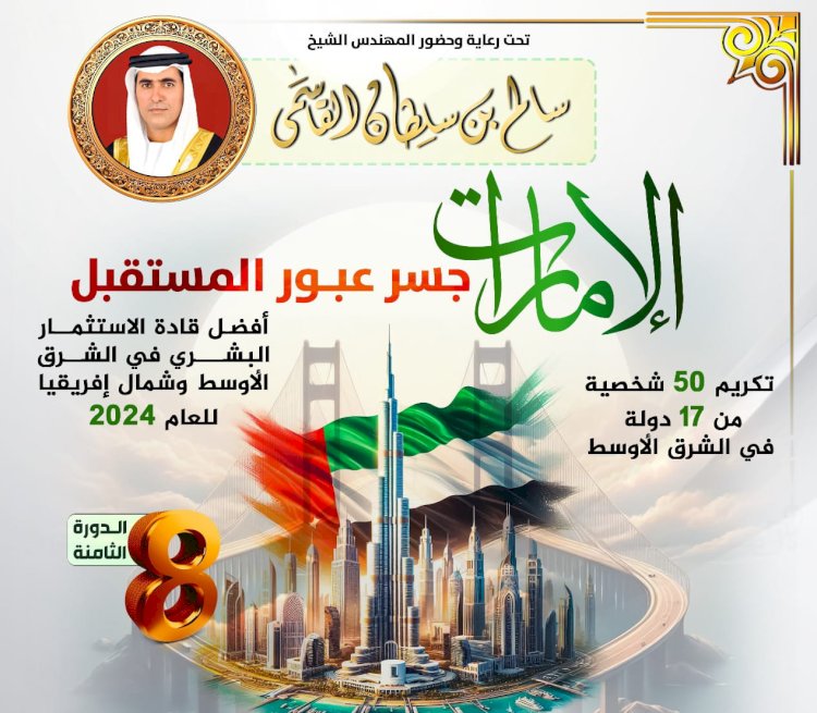 أعلنت مجلة استثمارات الإماراتية & منتدى المستقبل للاستثمارات العربية " FF2020AI "، عن تنظيم حفل دورتها الثامنة لتوزيع جوائزأفضل قادة الاستثمار البشري في الشرق الأوسط وشمال إفريقيا للعام 2024، يقام الحفل هذا العام تحت شعار " الإمارات جسر عبور المستقبل " وبرعاية وحضور المهندس الشيخ سالم بن سلطان بن صقر القاسمي، رئيس الاتحادات الآسيوية والعربية والإماراتية للمبارزة، وهو الحفل السنوي الذي يحضره العديد من الشيوخ والامراء في الإمارات ودول مجلس التعاون الخليجي، وكبار المسؤولين والقادة والسفراء ورؤساء المؤسسات الاقتصادية وهيئات ضمان الاستثمار وكبار قادة الأعمال والإعلاميين.