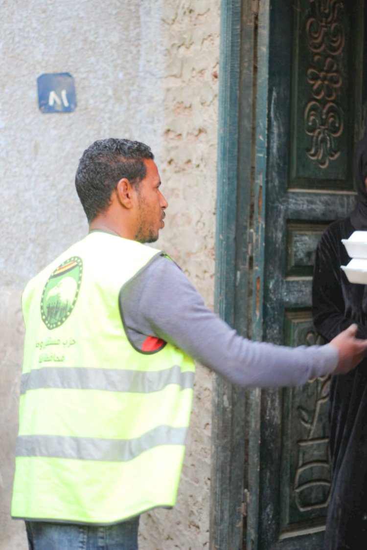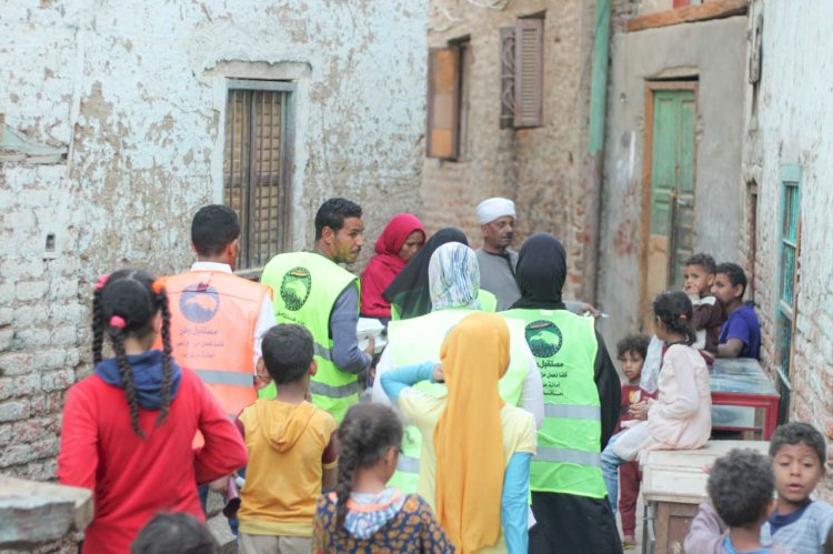 بتوزيع الوجبات على قري مركز قنا في مبادرة حملة إفطار صائم لأهالينا في قري مركز قنا في شهر رمضان الكريم