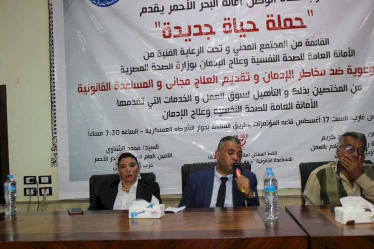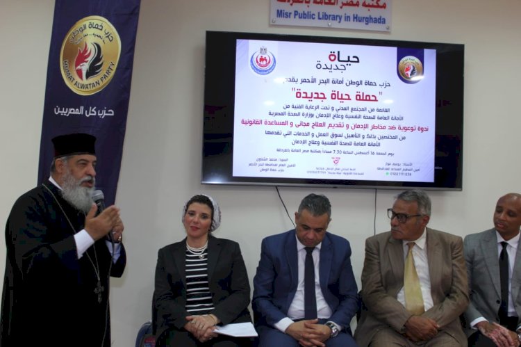 دشنت "حياة جديدة" حملتها بمحافظة البحر الأحمر على مدار يومين متتاليين بمدينتي الغردقة و مدينة رأس غارب تحت الرعاية الفنية من الأمانة العامة للصحة النفسية وعلاج الإدمان بوزارة الصحة المصرية ندوة توعوية ضد مخاطر الإدمان وتقديم العلاج المجاني والمساعدة القانونية وذلك لتأهيل المريض لسوق العمل وتقديم الخدمات التي تقدمها الأمانة العامة للصحة النفسية وعلاج الإدمان بالتعاون مع حزب حماة الوطن أمانة البحر الأحمر وذلك بحضور رُبان وسام مُسعد هركي المدير التنفيذي للحملة ، المستشار محمد أحمد المستشار القانوني للحملة ، السيدة فاطمة أمين المستشار الإعلامي للحملة ونخبة من رجال الكنيسة والأزهر الشريف والشرطة العسكرية وأمناء الأمانات بحزب حماة الوطن وبعض الشخصيات العامة .