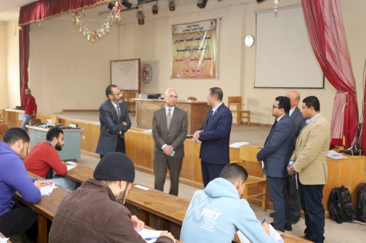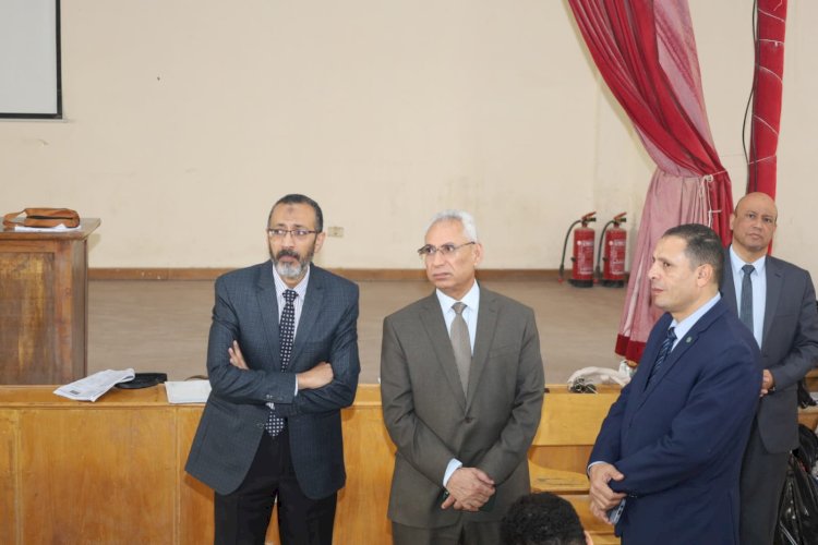 رئيس جامعة المنيا بتفقد لجان امتحانات كلية الطب البيطرى