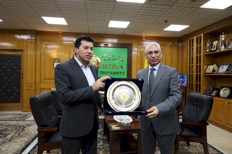 استقبل الدكتور عصام فرحات رئيس جامعة المنيا، الدكتور أشرف صبحي وزير الشباب والرياضة بمكتبه بحضور الدكتور عمرو سليمان عميد كلية التربية الرياضية ومندي عكاشة مدير مديرية الشباب والرياضة وعدد من أعضاء مجلسي النواب والشيوخ خلال زيارته للجامعه لمناقشة رسالتي دكتوراة وماجستير بكلية التربية الرياضية.