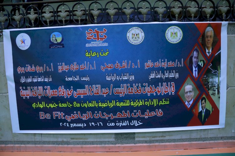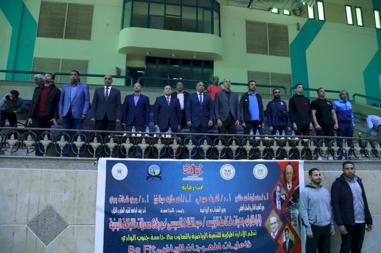 شهد الدكتور/ أحمد عكاوي رئيس جامعة جنوب الوادي انطلاق فعاليات المهرجان الرياضي " Be Fit " بالصالة المغطاة الكبرى بالجامعة والذي تنظمه الادارة المركزية للتنمية الرياضية بوزارة الشباب والرياضة بالتعاون مع جامعة جنوب الوادي خلال الفترة من 16 إلى 19ديسمبر الجاري تحت رعاية الدكتور/ أشرف صبحي وزير الشباب والرياضة، الدكتور/ محمد أيمن عاشور وزير التعليم العالي والبحث العلمي، والدكتور/ أحمد عكاوي رئيس الجامعة وبحضور الدكتور/ بدوى شحات نائب رئيس الجامعة لشئون التعليم والطلاب، والدكتور/ أشرف موسى عميد كلية التربية الرياضية، والدكتور/ محمود لبيب وكيل كلية التربية الرياضية لشئون التعليم والطلاب، والاستاذ محمد عبدالسميع ممثل وزارة الشباب والرياضة، والاستاذ محمد وليد مدير عام الإدارة العامة لرعاية الشباب والاستاذ محمد موسى مدير ادارة المشاط الرياضى واعضاء هيئة التدريس ومعاونيهم بكلية التربية الرياضية وادارة النشاط الرياضى بالجامعة، ولفيف من القيادات الادارية.