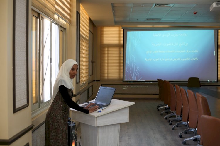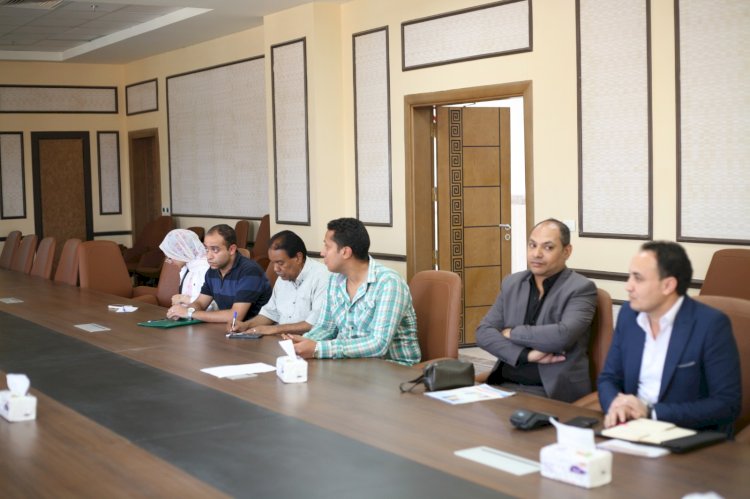 ناقش الدكتور/ أحمد عكاوي رئيس جامعة جنوب الوادي التطبيق الالكتروني للموارد البشرية بالجامعة الاهلية خلال الاجتماع الذي اقيم بمقر جامعة جنوب الوادي الاهلية بحضور الدكتور محمد اسماعيل النائب الاكاديمي لرئيس الجامعة الاهلية و الدكتور/ عماد علي عميد كلية الحاسبات و المعلومات ولفيف من منسقي البرامج ومسئولي مركز المعلومات والموارد البشرية بالجامعة واعضاء الجهاز الاداري