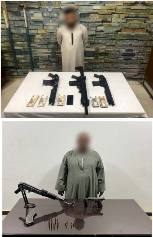 فى إطار جهود أجهزة وزارة الداخلية لمكافحة الجريمة بشتى صورها لاسيما جرائم حيازة الأسلحة النارية والذخائر غير المرخصة و الإتجار فيها.. فقد تمكن قطاع الأمن العام بمشاركة مديريات أمن (المنيا- الجيزة- أسوان) من ضبط الآتى: مديرية أمن المنيا ضبط (عنصر إجرامى – مقيم بدائرة مركز شرطة سمالوط غرب).. وبحوزته ( بندقية آلية - 3 بنادق خرطوش– طبنجة - فرد محلى- عدد من الطلقات مختلفة الأعيرة). مديرية أمن الجيزة (عنصر إجرامى "له معلومات جنائية") بدائرة مركز شرطة العياط.. وبحوزته (3 بنادق خرطوش). مديرية أمن أسوان (عنصر إجرامى "له معلومات جنائية" – مقيم بدائرة مركز شرطة إدفو).. وبحوزته (بندقية آلية – طبنجة - عدد من الطلقات). وبمواجهتهم إعترفوا بحيازتهم للأسلحة النارية بقصد الإتجار. تم إتخاذ الإجراءات القانونية.