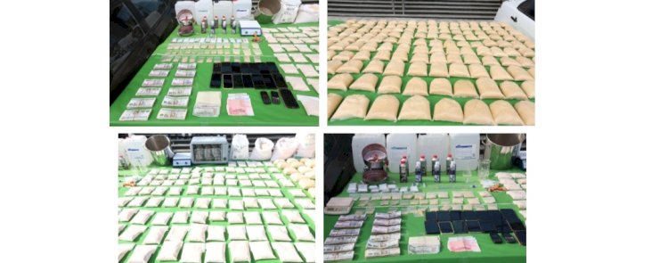 فى إطار مواصلة وزارة الداخلية توجيه الضربات الإستباقية للعناصر الإجرامية من متجرى المواد المخدرة.. فقد أكدت معلومات وتحريات قطاع مكافحة المخدرات والأسلحة والذخائر غير المرخصة بالتنسيق مع جهات الوزارة المعنية قيام تشكيل عصابى يضم (9 أشخاص لـ 6 منهم معلومات جنائية) بمحاولة جلب كميات من مخدر البودر "الحشيش الإصطناعى" والمواد الخام المكونة له لخلط وتهيئة تلك المواد تمهيداً للإتجار بها. عقب تقنين الإجراءات تم إستهدافهم وإعداد الأكمنة اللازمة لهم وضبطهم وبحوزتهم (94 كيلو جرام من مخدر الحشيش الإصطناعى - كميات كبيرة من المواد الخام المستخدمة فى خلط وتهيئة المواد المخدرة – الأدوات المستخدمة فى التصنيع – "3 سيارات ، مبالغ مالية عملات محلية وأجنبية " من متحصلات نشاطهم الإجرامى –17 هاتف محمول).. وتُقدر قيمة المواد المخدرة المضبوطة بحوالى (240 مليون جنيه). تم إتخاذ الإجراءات القانونية.