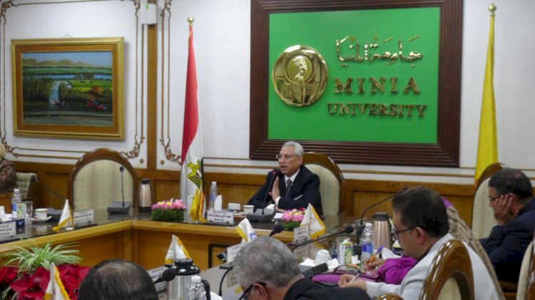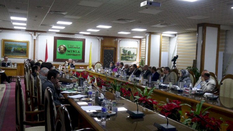 عقد مجلس جامعة المنيا اجتماعه الدوري برئاسة الدكتور عصام فرحات رئيس الجامعة، وبحضور السادة عمداء الكليات، ومدير مركز ضمان الجودة والاعتماد، والمدير التنفيذي للمعلومات، وأمين عام الجامعة أعضاء المجلس.