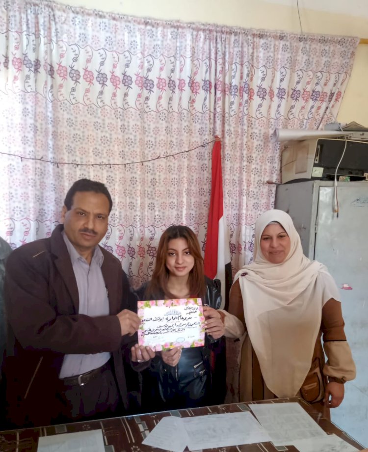 كما كرم مدير عام الإدارة الطالبة مريم ايمن يوسف بالصف الخامس الابتدائي لتميزها في مجال الرسم ومشاركتها في معرض القاهره الدولي للفن التشكيلي بالزمالك متمنيا لها دوام التوفيق والمزيد من النجاحات