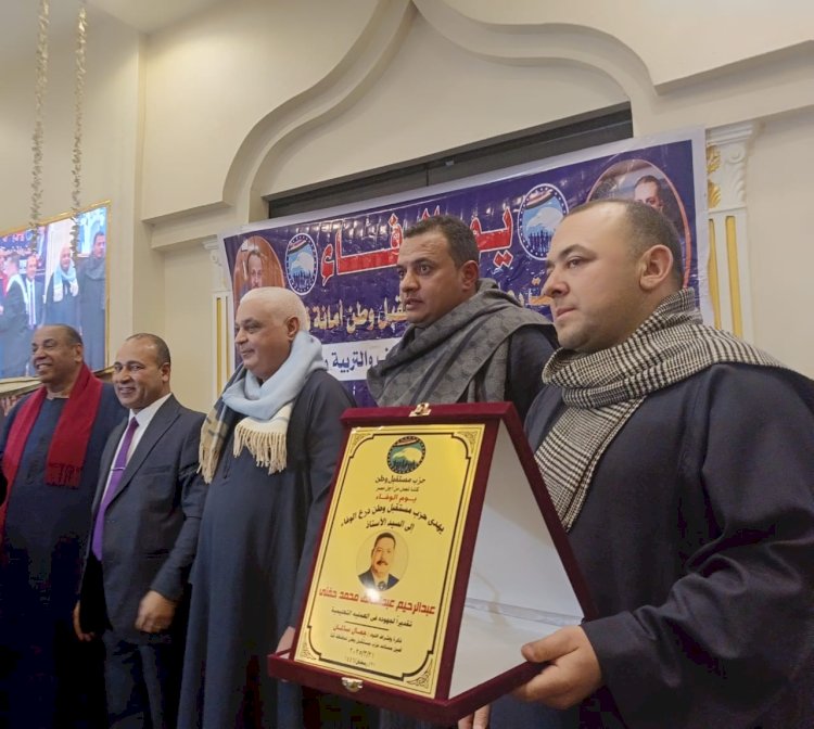 من جانبه، ألقى/ عبد الفتاح عبد العزيز حسن، أمين الحزب بمركز نجع حمادي، كلمة شكر فيها المعلمين على تفانيهم وعطائهم المستمر، وأكد على التزام الحزب بدعم كافة الجهود الرامية إلى تحسين جودة التعليم وتعزيز مكانة المعلم في المجتمع.