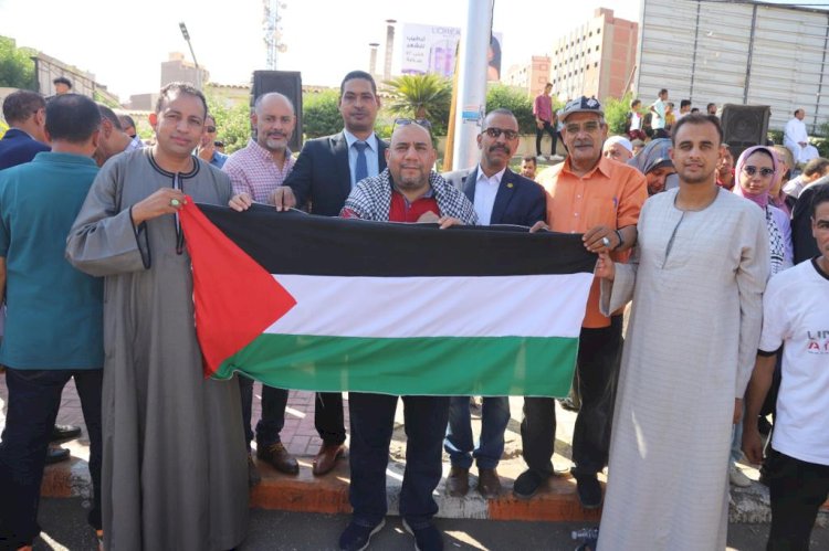 تقدم الدكتور/ أحمد عكاوي رئيس جامعة جنوب الوادي المسيرة التي نظمتها الجامعة اليوم الجمعة دعما لصمود الشعب الفلسطيني وتأييدا لقرارات فخامة الرئيس عبد الفتاح السيسي في حماية الأمن القومي المصري