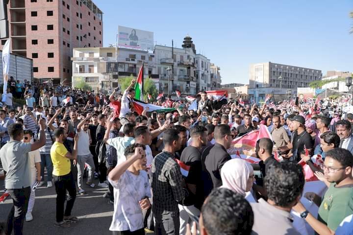 ونظم آلاف من المتضامين مع أهالي فلسطين بكافة الأطياف بالمجتمع للقنائي والقيادات الشعبية وحزب مستقبل وطن مسيرات حاشدة جابت شوارع مدينة قنا الرئيسية حاملين الأعلام الفلسطينية والمصرية