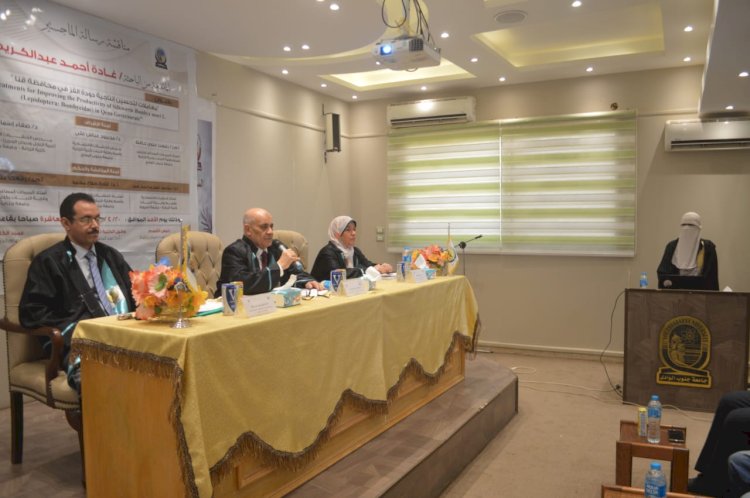 وفي ختام المناقشة أوصت لجنة الحكم والمناقشة بمنح الباحثة درجة الماجستير في وقاية النبات تخصص النحل والحرير.