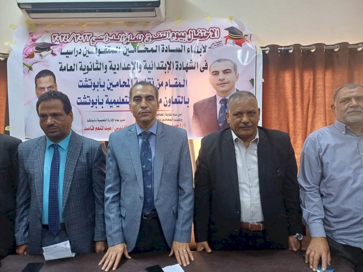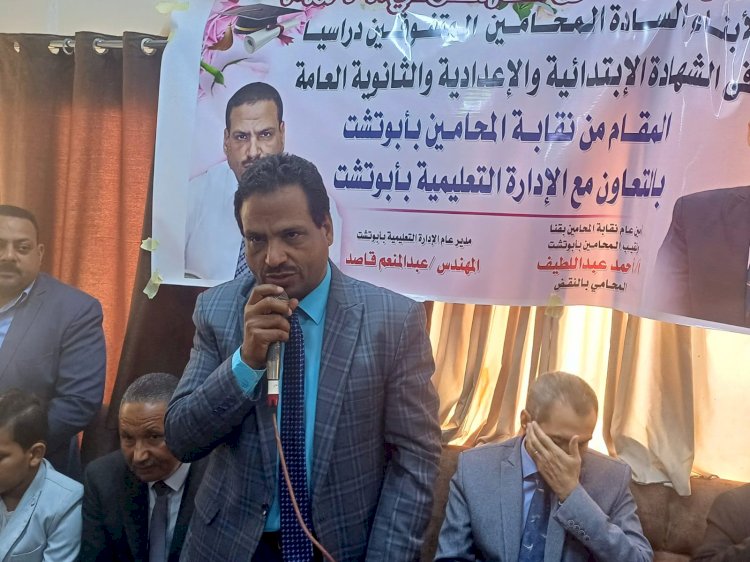 نظمت نقابة المحامين بابوتشت شمالي قنا بقيادة الأستاذ أحمد عبداللطيف أمين عام نقابة المحامين بقنا ونقيب المحامين بأبوتشت اليوم الخميس 19 سبتمبر الجاري حفل تكريم الطلاب المتفوقين من أبناء المحامين دراسيا بمراحل التعليم المختلفة الإبتدائي والإعدادي والثانوي للعام الدراسي 2024/2023م بمقر نقابة المحامين بمدينة ابوتشت بحضور المهندس عبدالمنعم قاصد مدير عام إدارة أبوتشت والأستاذ هاني الملقب مدير العلاقات العامة والإعلام وحدادي صابر مسؤول الأمن وطارق صلاح الدين وجلال أحمد وحلمي محمود وعلي سليمان المحامون واعضاء نقابة المحامين بابوتشت وحشد كبير من المحامين والطلبة المتفوقين وأسرهم
