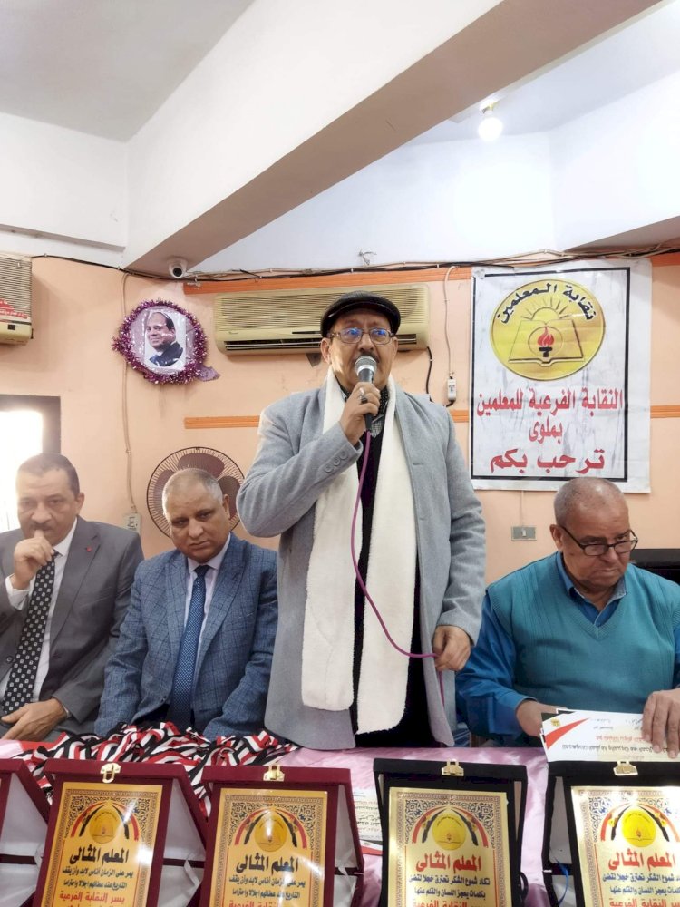 أقامت النقابة الفرعية للمعلمين بملوي برئاسة الأستاذ أحمد محمد أحمد الشهير (ب حماده النقيب) حفلاً لتكريم المعلمين المثاليين الواردة أسماؤهم من المدارس والسادة حملة الماجستير والدكتوراه ورواد المعلمين. وذلك بحضور المهندس محمد أحمد عبد السميع. مدير عام إدارة ملوى التعليمية والأستاذ أيمن عطا. أمين النقابة والأستاذ سلامه صدقى أمين الصندوق والشيخ نصر الدين محمد. رئيس لجنة الخطاب الديني والأستاذ إمام ذكى. مدير التعليم الإعدادي والأستاذ عبد الباقي ابراهيم مدير المتابعة والسادة أعضاء مجلس النقابة الفرعية وأعضاء اللجان النقابية ولفيف من السادة الضيوف.