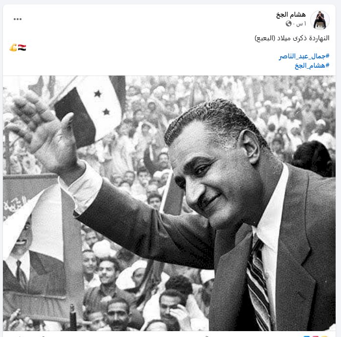 وكتب الجخ في منشور بصورة الرئيس الراحل جمال عبدالناصر: "البعبع".
