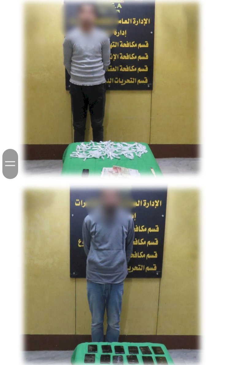 ضبط (عنصرين إجراميين - لهما معلومات جنائية) بدائرة مركز شرطة القناطر الخيرية بالقليوبية ، وبحوزتهما (كمية من مخدر الهيروين – سلاح أبيض - مبلغ مالى). ضبط (عنصرين إجراميين - لهما معلومات جنائية) بدائرة مركز شرطة أبو صوير بالإسماعيلية ، وبحوزتهما (كمية من مخدر الهيدرو وزنت 100 كيلو جرام– 20 طربة لمخدر الحشيش وزنت 2 كيلو جرام - مبلغ مالى). ضبط (عنصرين إجراميين) بدائرة مركز شرطة أبو صوير بالإسماعيلية ، وبحوزتهما (60 كيلو جرام لمخدر الهيدرو - مبلغ مالى) . وبمواجهتهم إعترفوا بحيازة المواد المخدرة بقصد الإتجار والمبالغ المالية من متحصلات نشاطهم الإجرامى. هذا وتقدر القيمة المالية للمواد المخدرة المضبوطة بحوالى (5,520,000 جنيه). تم إتخاذ الإجراءات القانونية.