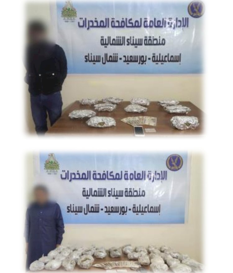 بنطاق مديريتى أمن (القليوبية – الإسماعيلية) تخصصوا فى الإتجار بالمواد المخدرة وترويجها على عملائهم. عقب تقنين الإجراءات أمكن إستهدافهم وضبطهم على النحو التالى:- ضبط (شخصين – لأحدهما معلومات جنائية) بدائرة مركز شرطة القناطر الخيرية بالقليوبية ، وبحوزتهما (5 كيلو جرام لمخدر الحشيش – فرد خرطوش - طلقتين من ذات العيار– سلاح أبيض - مبلغ مالى). ضبط (عنصر إجرامى - له معلومات جنائية) بدائرة مركز شرطة القناطر الخيرية بالقليوبية ، وبحوزته (1,600 كيلو جرام لمخدر الحشيش – مبلغ مالى).