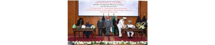 كما شهد اللقاء إستعراض دور الأكاديمية والمركز المصرى للتدريب على عمليات حفظ السلام كأحد كيانات أكاديمية الشرطة والمنشأ وفقاً لأحدث المعايير الدولية من كافة الجوانب التدريبية والتعليمية واللوجيستية وكذا المعهدين القوميين لتدريب القوات الخاصة والحراسات والتأمين ، فى تنمية وصقل المهارات العلمية والبدنية والمهارية للكوادر الشرطية المصرية والأجنبية من خلال عقد الدورات التدريبية والندوات وورش العمل المتخصصة لتنمية قدراتهم. أعقب ذلك توقيع مذكرة التفاهم بين مفوضية الإتحاد الإفريقى والمركز المصرى للتدريب على عمليات حفظ السلام ، وذلك للتعاون فى مجالات تدريب العناصر الشرطية وبناء قدراتهم للمشاركة فى عمليات دعم السلام التابعة للإتحاد الأفريقى ، وتبادُل الدروع وإلتقاط الصور التذكارية الجماعية لأعضاء الوفد الأمنى وقيادات وضباط الأكاديمية. فى ختام الزيارة أعرب أعضاء الوفد الزائر عن خالص شكرهم وتقديرهم لوزارة الداخلية المصرية على حفاوة الإستقبال وإتاحة الفرصة لإنفاذ الزيارة ، مُشيدين بدور الأكاديمية في إعداد وتأهيل ضباط الشرطة وتنمية قدرات الكوادر الأمنية الأفريقية.
