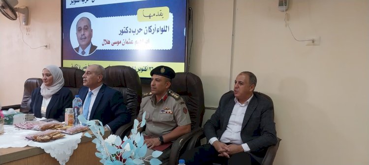 نظمت كلية الألسن بجامعة بني سويف ندوة توعوية حول "نعمة الأمن والسلام والدروس المستفادة من حرب أكتوبر"وذلك بإشراف الدكتور أبو الحسن عبد الموجود، نائب رئيس الجامعة لشؤون خدمة المجتمع وتنمية البيئة، والدكتورة مروة محمود، عميد الكلية، وحاضر بها اللواء أ.ح إبراهيم عثمان موسي هلال الخبير الاستراتيجي ونائب أمين عام مجلس الدفاع الوطني سابقاً، جاء ذلك بحضور عدد من أعضاء هيئة التدريس، والعاملين، والطلاب بالكلية