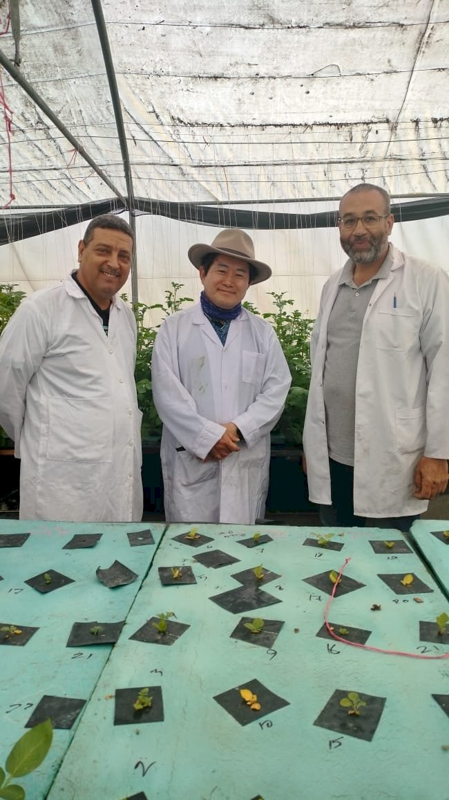 و الدكتورة رشا رمضان والدكتور محمد مصطفى بقسم البطاطس،، و تمت معاينه الأصناف المزروعة وأخذ عينات منها لإجراء القياسات العملية وقد أشاد الجانب الكوري بالجهد المبذول من أعضاء قسم بحوث البطاطس بالدقي و اعضاء محطة بحوث البساتين بالقناطر الخيرية.