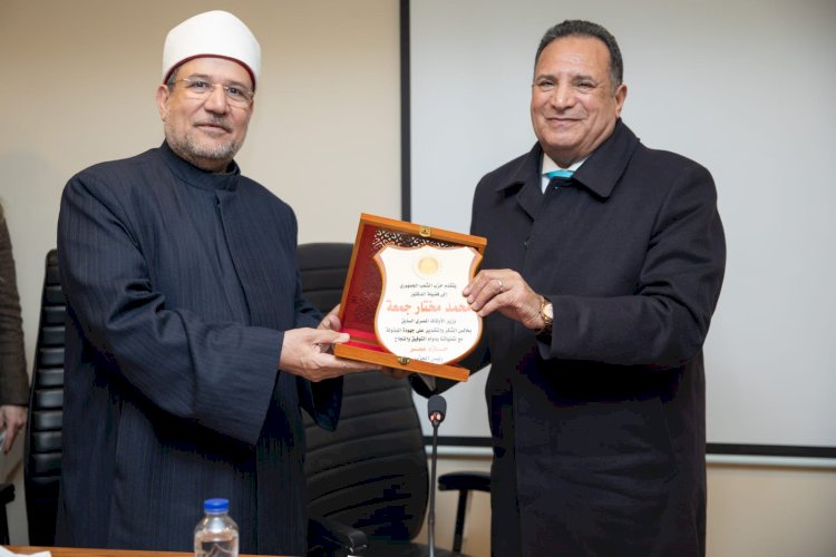 وفي ختام الندوة، قدم اللواء محمد صلاح أبو هميلة، درع تكريم إلى الدكتور محمد مختار جمعة، تقديرًا لجهوده المستمرة في نشر الدعوة الإسلامية.