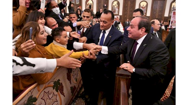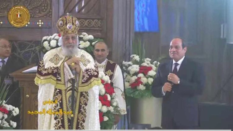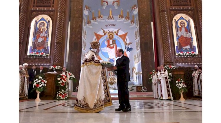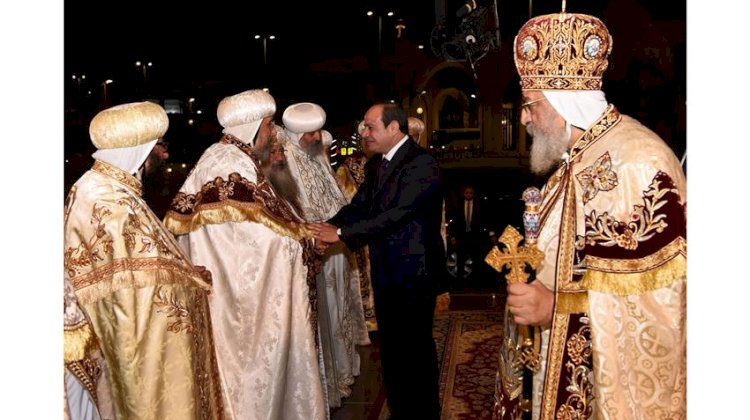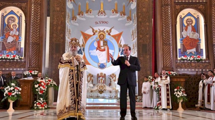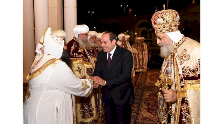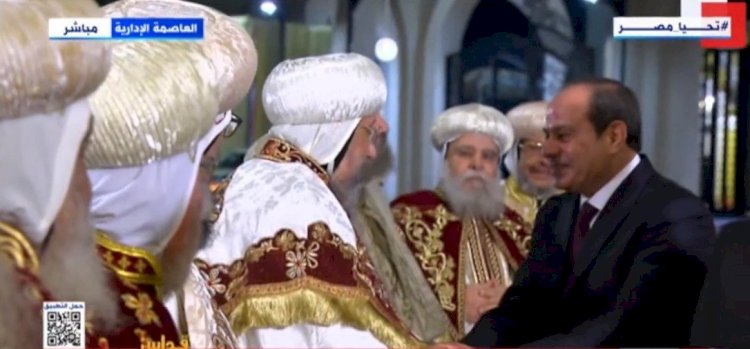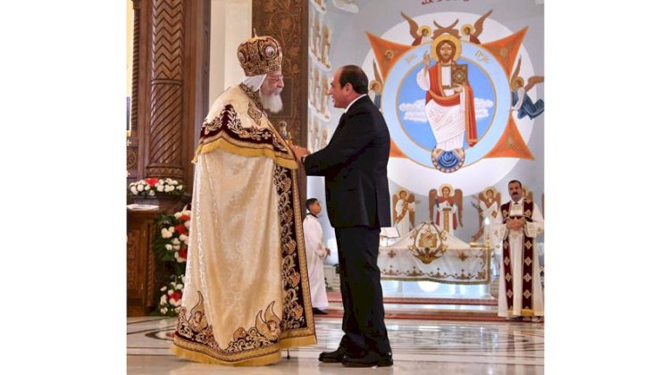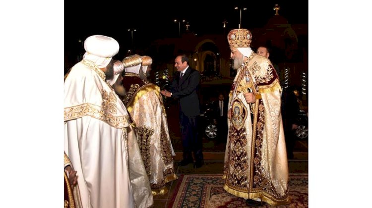 قام الرئيس عبد الفتاح السيسي بتهنئة قداسة البابا تواضروس وجموع الاقباط وذلك في كاتدرائية ميلاد المسيح بالعاصمة الإدارية