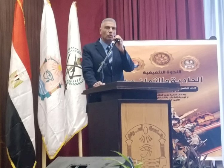 وتناولت الندوة محاضرة بعنوان تنمية روح الولاء والانتماء وتوعية الشباب بالمخاطر التي تهدد الأمن القومي المصري ، التي وتناول خلالها اللواء سمير عبدالغني المحاضر باكاديمية ناصر العسكرية، نبذة عن تأسيس الجماعات الإسلامية المسلحة والتي احتلت بعض الدول بالشرق الأوسط والوطن العربي وتقوم ببث براثن الشر والأفكار الهدامة والمعتقدات المخربة، وخطورتها علي الشعوب وتفتيت دول المنطقة،ثم عرض فيلم وثائقي عن جامعة أسوان منذ نشأتها وعدد كلياتها وخدماتها تجاه المجتمع ودورها الثقافي والمجتمعي بجنوب صعيد مصر. مع قيام الطلاب بعرض فقرات فنية واغاني وطنية تلهب الحماس والعزيمة والإصرار والإرادة القوية لدي جموع الحضور .