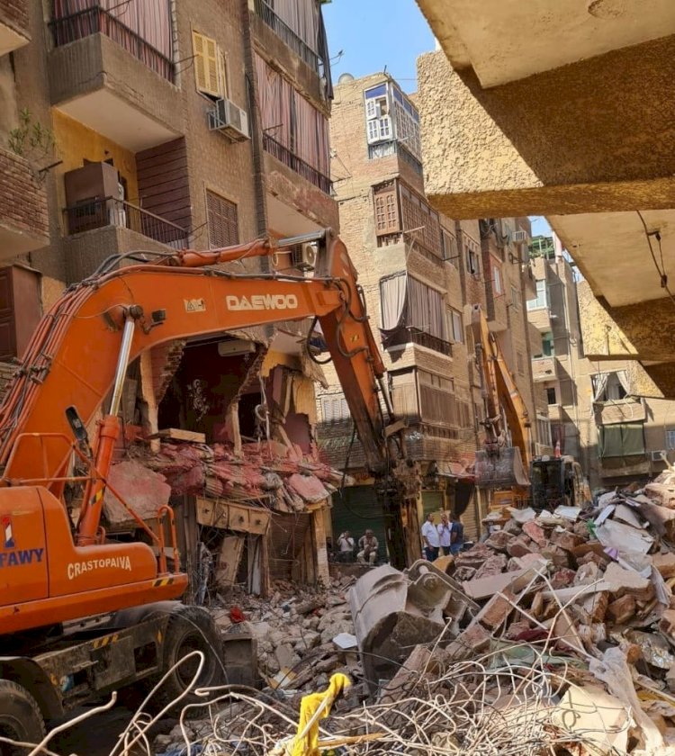 انتقلت الحماية المدنية الي المكان وبدأت في رفع الانقاض بحثا عن ما إذا كان هناك قد كان يمر بالصدفه وسقط عليه العقار من عدمه .