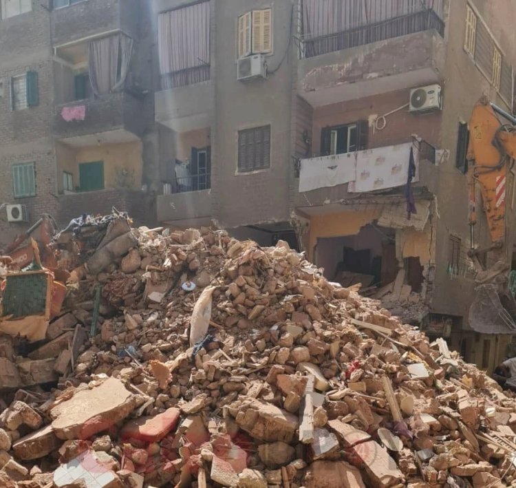 وخوفا علي العقار المواطنين والسكان تم هدم البلكونات المقابلة خوفا من سقوطها او تأثر العقار بها