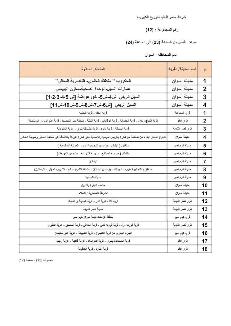 أعلن مجلس الوزراء، عن خطة تخفيف أحمال الكهرباء، التى سيتم تنفيذها بدءا من الساعة الثانية عشرة ظهر الغد الثلاثاء، فى المحافظات المختلفة، بعد التنسيق بين وزارتى الكهرباء والبترول.