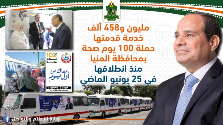 أعلن اللواء أسامة القاضي محافظ المنيا، أن إجمالي المنتفعين بالخدمات الطبية المجانية لحملة «100 يوم صحة» بالمحافظة تحت شعار (معاك من أول يوم) بلغ مليون و 458 ألف و224 حالة منذ بدء الحملة وحتى 25 أغسطس الجارى بكافة مراكز الرعاية الأساسية ومستشفيات وزارة الصحة، فضلاً عن وجود فرق متنقلة تجوب المراكز والقرى والنجوع وتستهدف جميع فئات المجتمع وكافة الأعمار، مناشداً المواطنين الاستفادة من الخدمات المجانية التي تقدمها الحملة بكافة مواقعها الثابتة والمتنقلة للتيسير على المواطنين والوصول إلى أكبر عدد ممكن لتحقيق أهداف الحملة. من جانبه، أوضح الدكتور محمد حسنين وكيل وزارة الصحة، أن حملة «100 يوم صحة» قدمت خدماتها في الصحة العامة لعدد 122 ألف و277 حالة، بالإضافة إلى تطعيم 368 ألف و273 طفلاً وفحص 1214 طفلاً ضمن الكشف المبكر وعلاج الأمراض الوراثية لدى الأطفال حديثي الولادة ، مشيرا إلى تقديم الخدمة في مجال تنظيم الأسرة والصحة الإنجابية لحوالي 905 ألف و126 سيدة، بالإضافة إلى تقديم 42 ألف و 501 خدمة طبية وعلاجية بالعيادات المتنقلة التابعة للقوافل الطبية ، فضلاً عن تقديم الخدمات الأخرى في مجال الخدمات الوقائية والعلاجية، وتقديم الخدمات التوعوية والتثقيف الصحي ضمن فعاليات الحملة. وأضاف أنه في مجال مراقبة الأغذية، تم تقديم 18 ألف و 296 خدمة تنوعت بين المرور على المنشآت الصحية وتحرير محاضر للمنشآت المخالفة وإعدام أغذية ومشروبات غير صالحة للاستهلاك، إلى جانب تقديم 537 خدمة في مجال صحة البيئة وذلك من خلال المرور على محطات مياه الشرب ومحطات معالجة مياه الصرف الصحي وأخذ عينات مياه من حمامات السباحة.