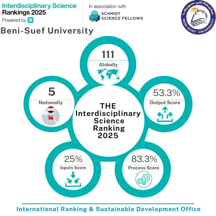 اعلن الدكتور منصور حسن رئيس جامعة بني سويف ، حصول الجامعة علي المرتبة 111 عالميا والمرتبة 5 على مستوي جامعات مصر حيث تم تصنيف 749 جامعة من 92 دولة على مستوي العالم ، وذلك طبقا لتصنيف THE البريطاني للعلوم البينية الإصدار الأول 2025