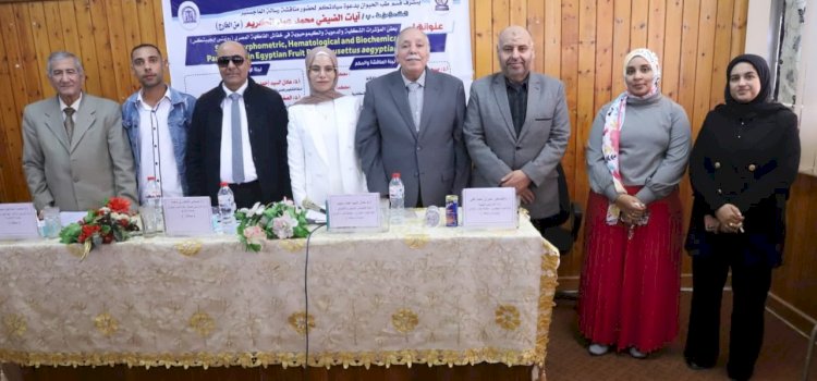عقدت المناقشة فى رحاب جامعة جنوب الوادي برعاية الدكتور أحمد عكاوي، رئيس الجامعة، والدكتور سامي عبدالرؤوف فهيم، عميد كلية الطب البيطري.