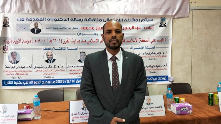 وفي ختام المناقشة أوصت لجنة المناقشة والحكم بمنح الباحث عبدالرحمن موسى حسين محمود، درجة الدكتوراة في الآثار تخصص الآثار الإسلامية من كلية الآثار بجامعة جنوب الوادي.